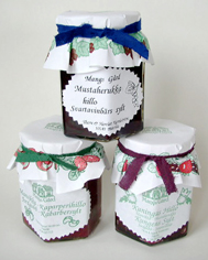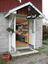 Här säljer vi gårdens produkter, sylt, saft, gelé, senap, glögg till julen m.m. Nyplockade jordgubbar, hallon, äppel, äppelmust pressad i eget musteri. Sortimentet varierar - varje skördesäsong följer årstiderna. |